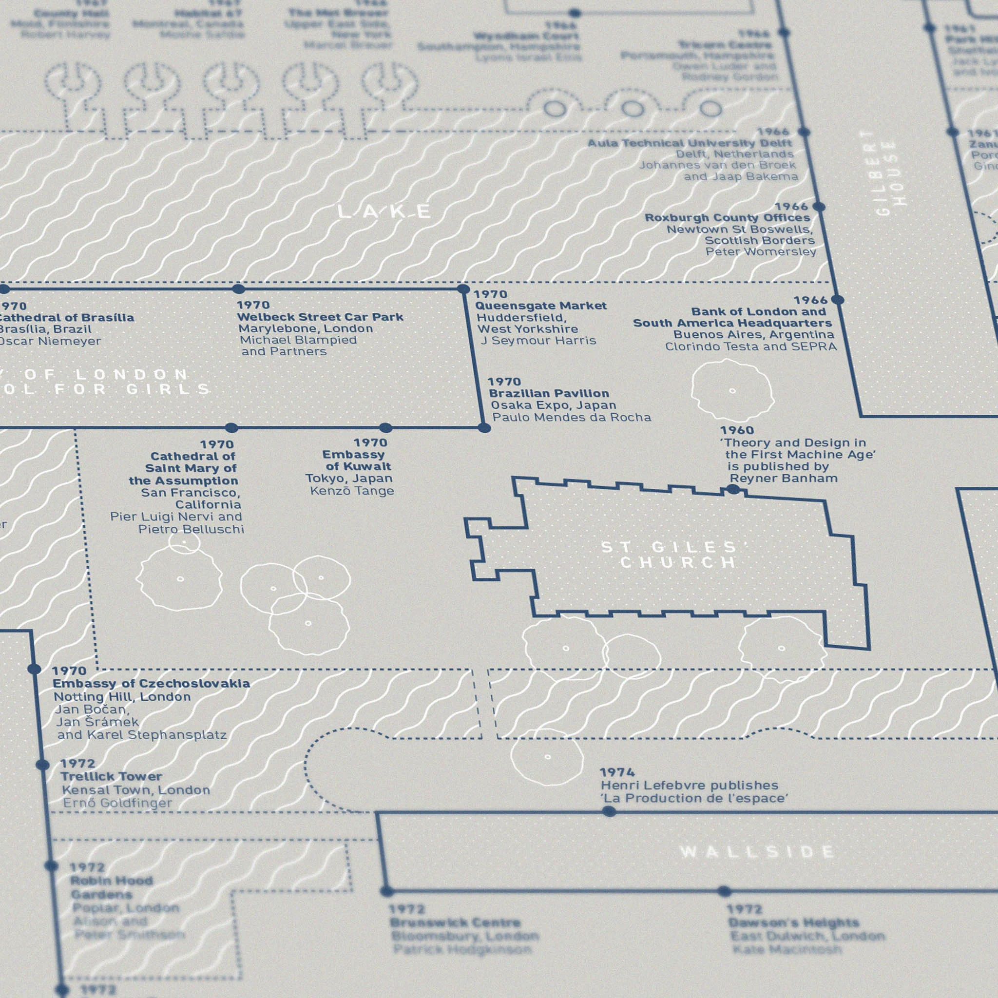 Our Brutalist Love Blueprint maps out the history of brutalist architecture on the footprint of the Barbican Estate.