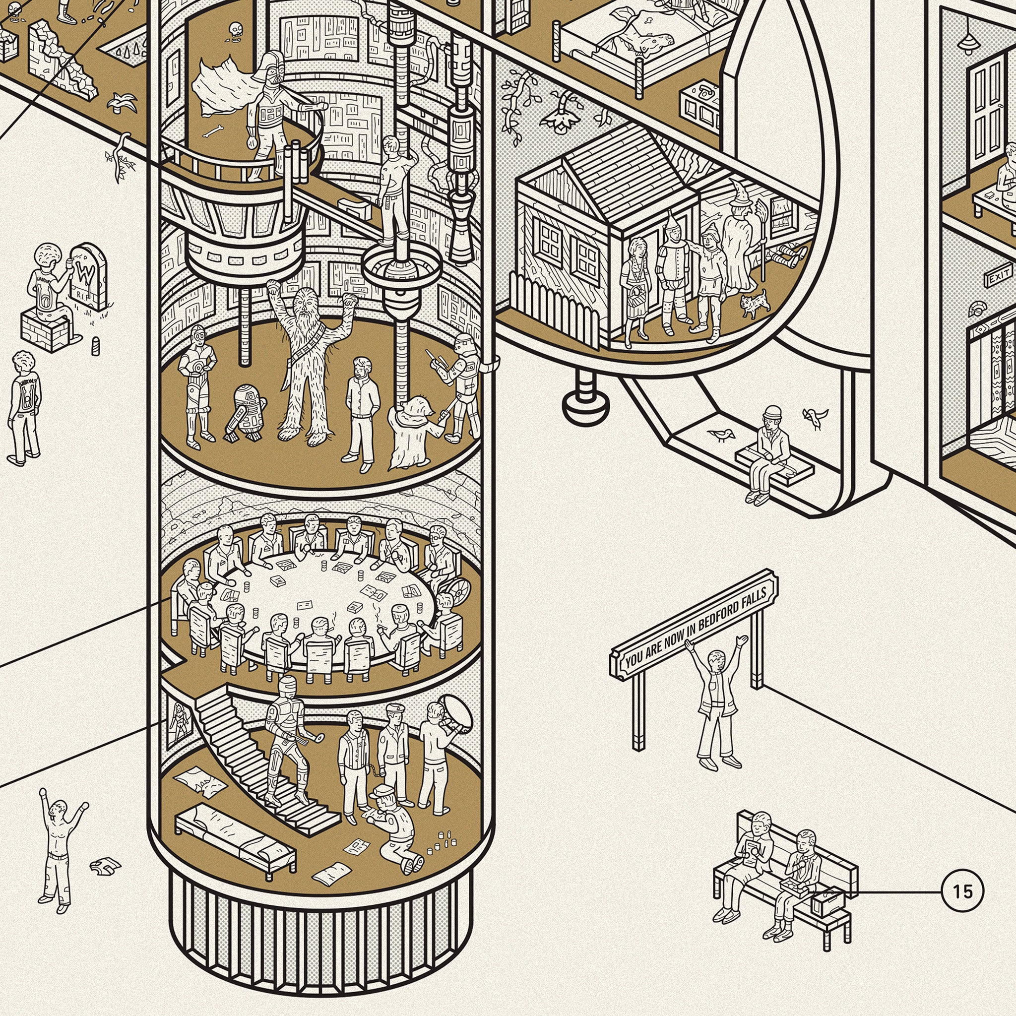 Dorothy’s new cutaway print imagines the internal going-ons inside this classic movie camera. Look closely and see how many iconic scenes from famous films you can identify.
