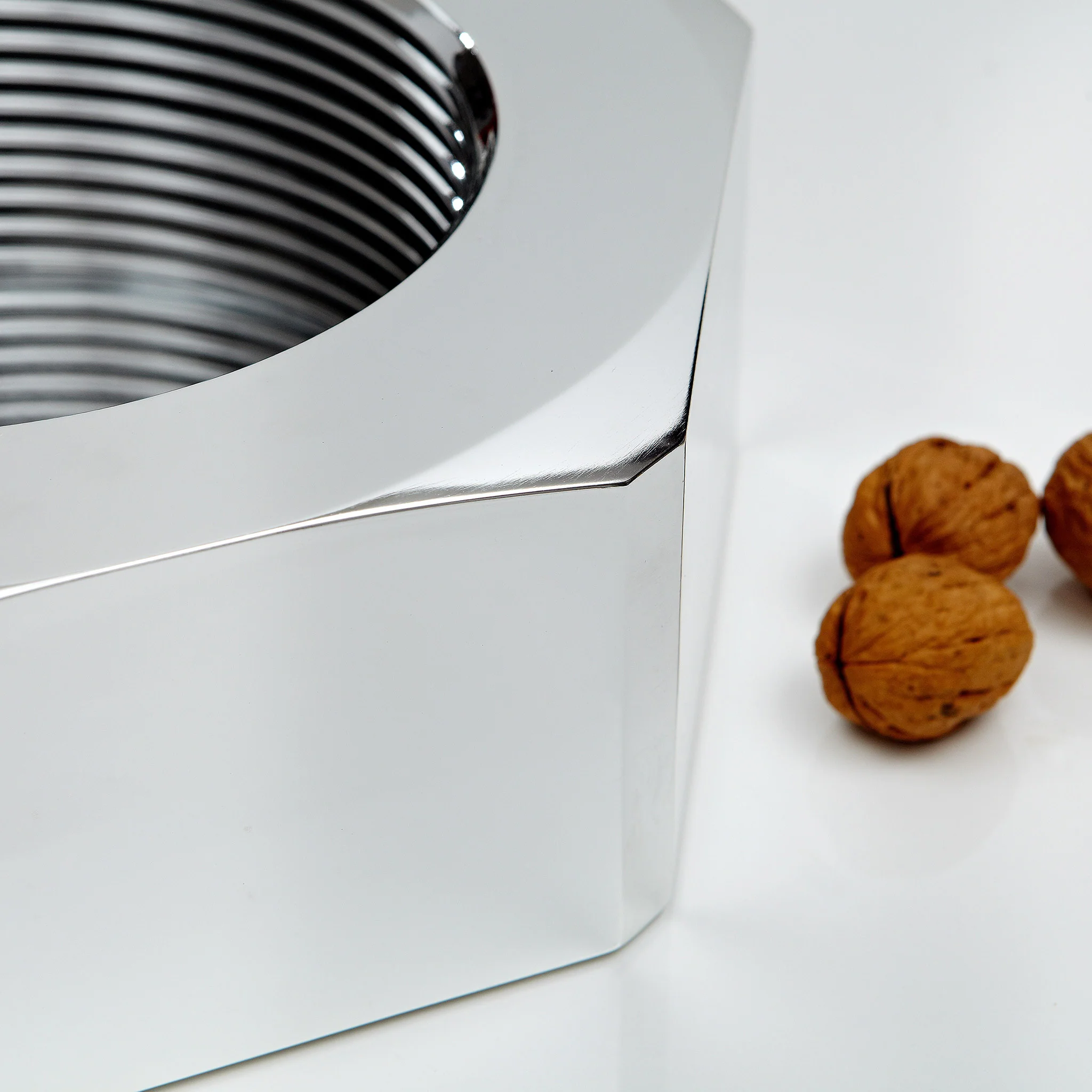What object is more essential to everyday life yet so entirely taken for granted than the humble nut? Dorothy's sublime Nut Bowl elevates this unappreciated piece of industrial hardware to an ornamental and functional object of beauty. Only the most gourmet of nibbles may apply.