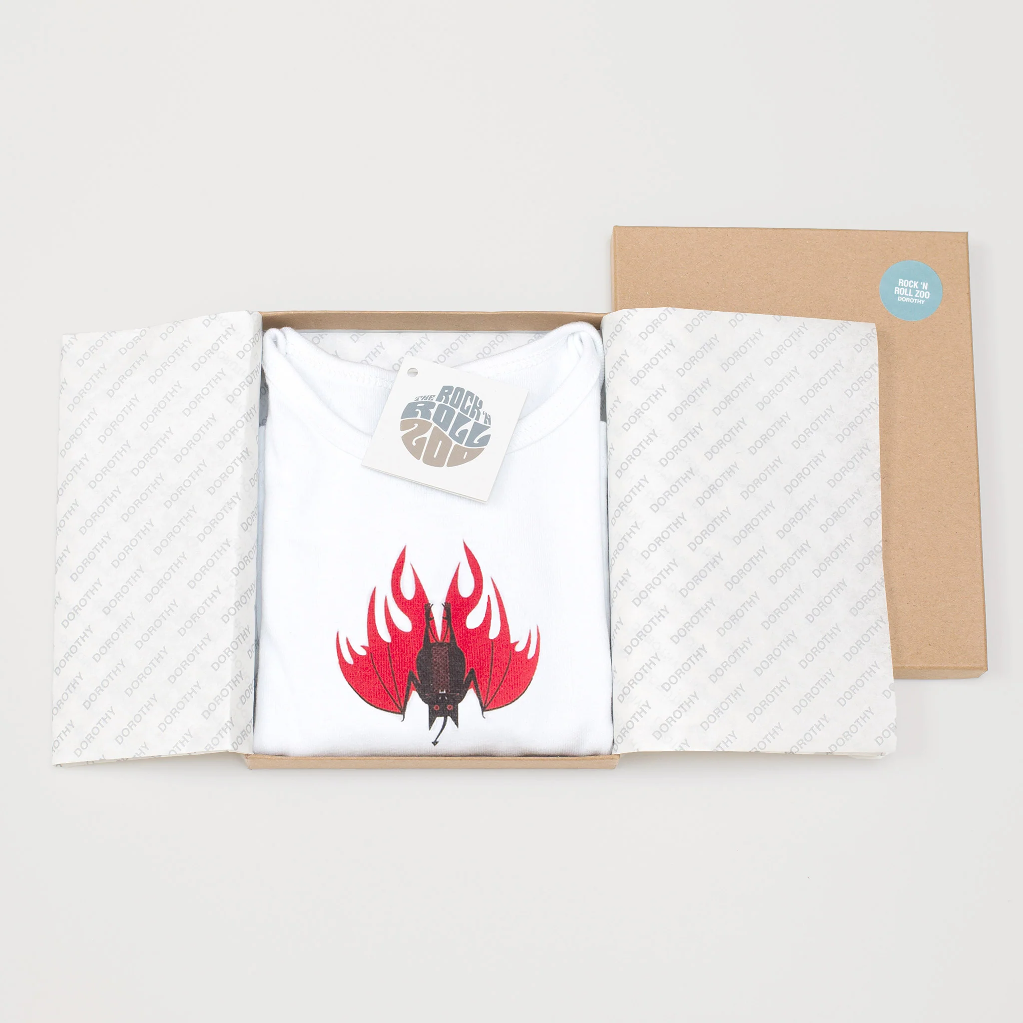 Baby t-shirt for little rockers from our Rock 'N' Roll Zoo range, featuring illustrations of animals inspired by the titles of famous songs.